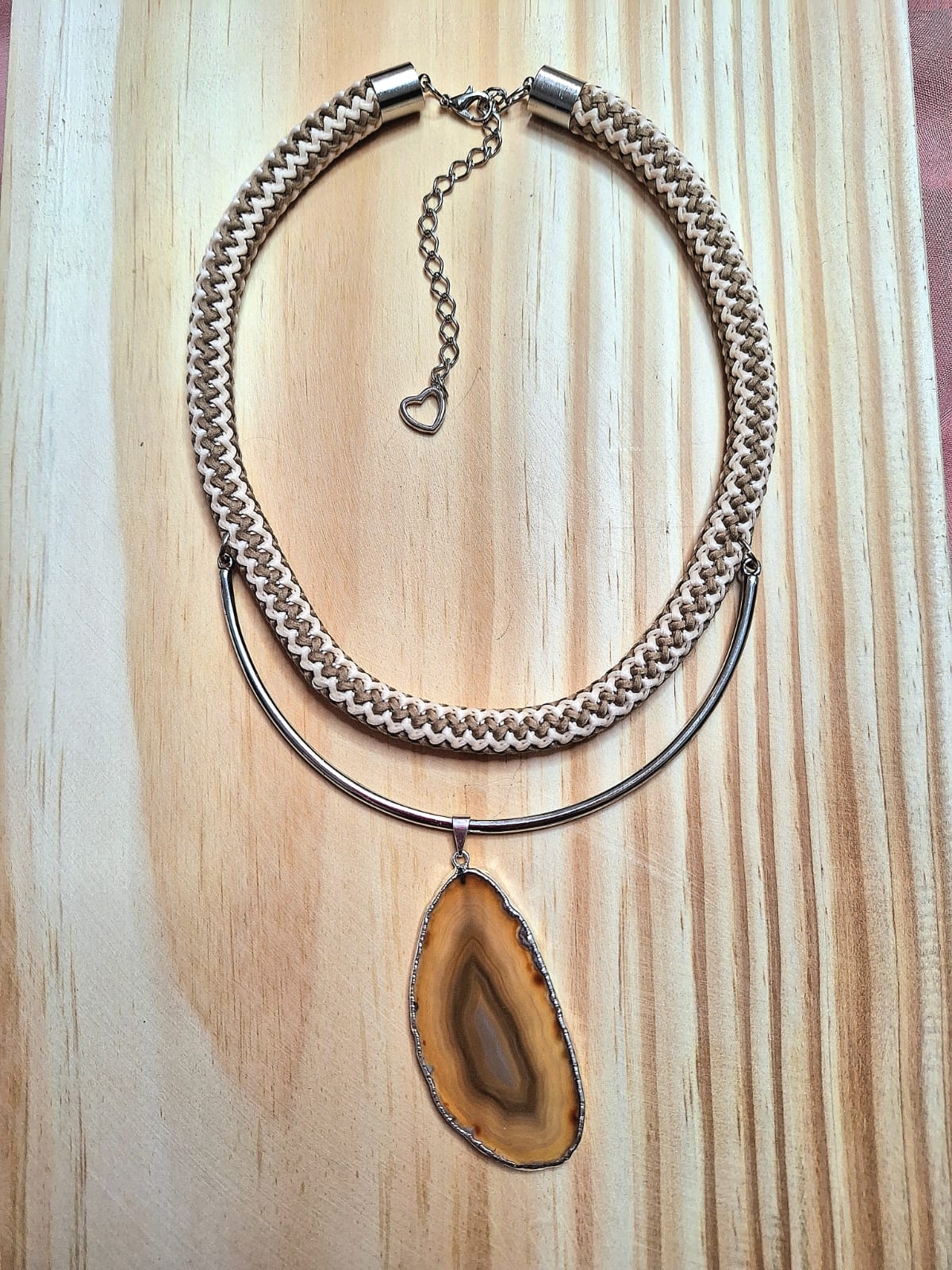 Colar de corda com pingente de chapa de ágata.